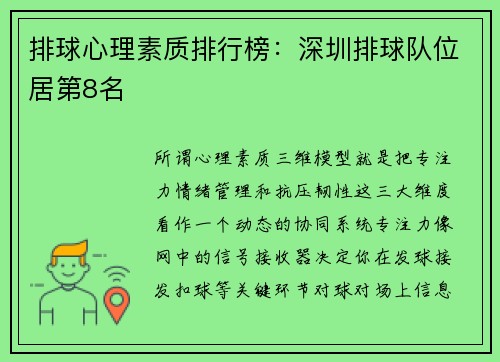 一、序章:心态决定血线,风格决定赛果广州网球队在过去一年的竞技舞台上,正在用另一种方式书写“胜负”的定义。过去,我们习惯把胜负归因于力量、速度、击球质量,但现在的你会发现,真正决定结果的是看不见的力量——心理素质。它不是天生的光环,而是可以被训练、被量化、被提升的竞技能源。 数据也在讲述同样的故事:在高强度对抗里,广州队的情绪自控、专注力维持和自信心在关键阶段的表现,较以往提升在15%到20%之间...